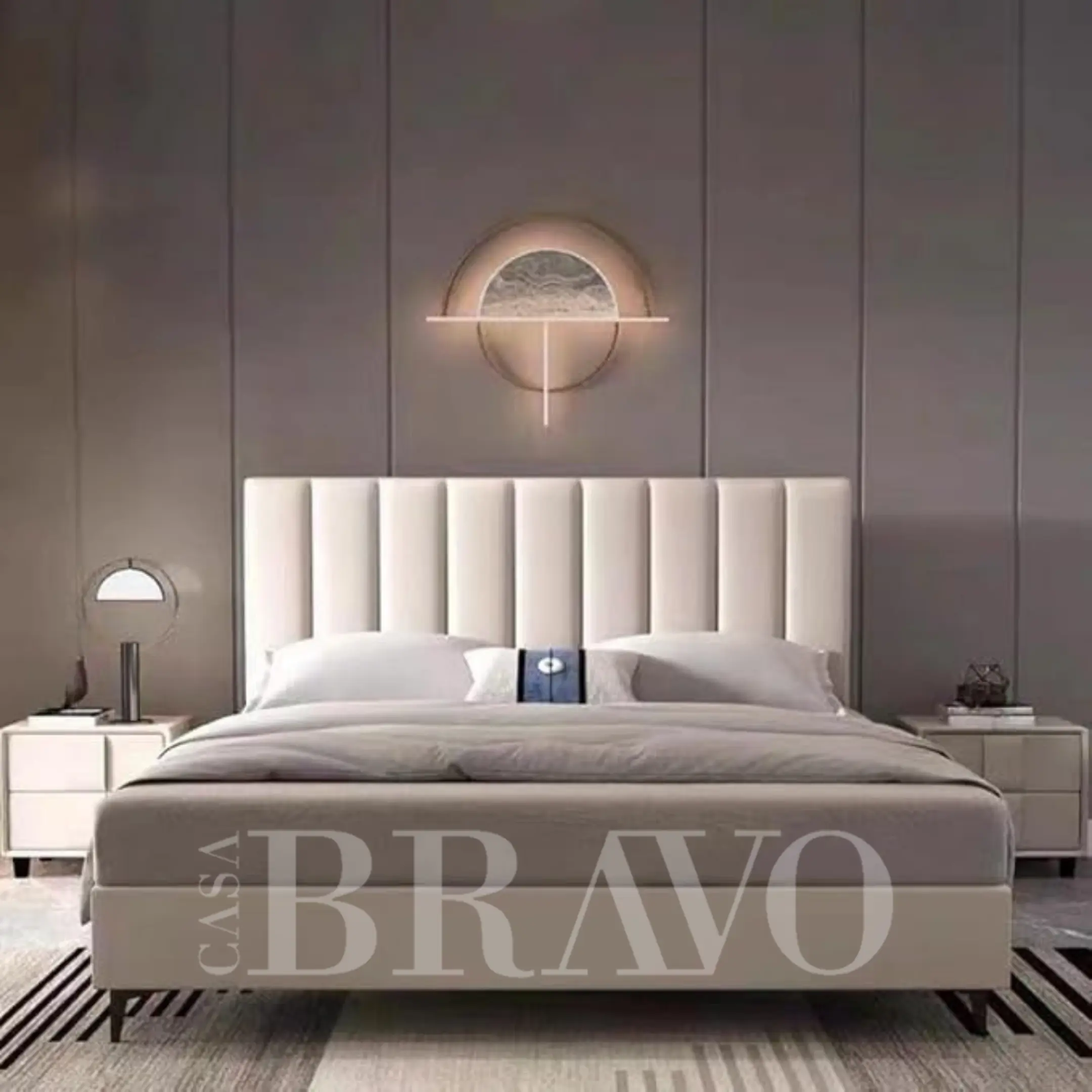 • Elegant modern bed design with a soft padded headboard for ultimate comfort