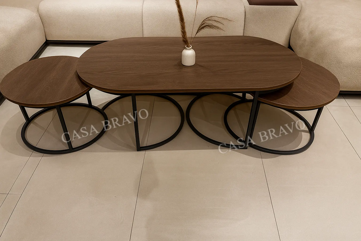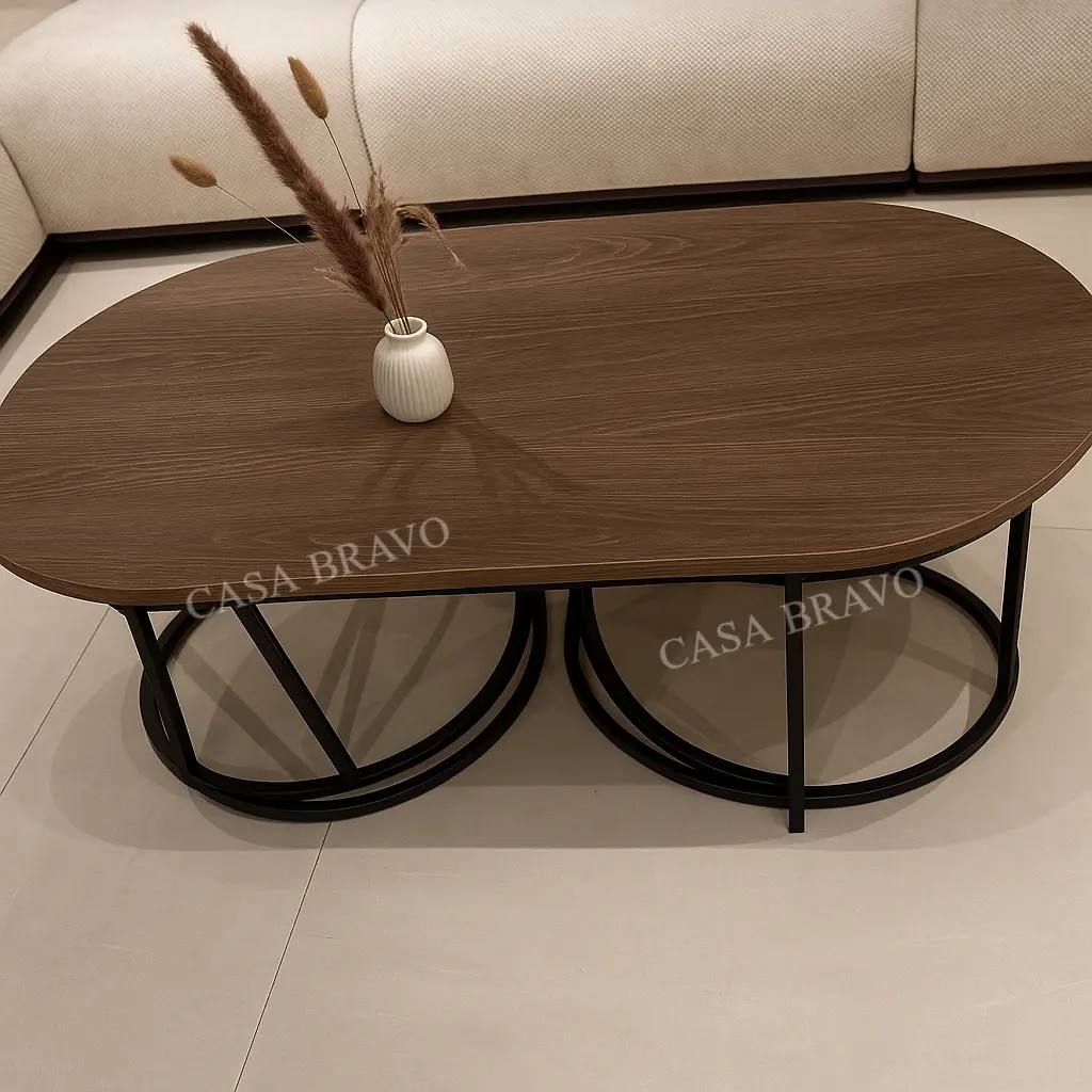 The Aurora Nesting Center Table features an elegant oval top paired with two perfectly rounded nesting tables that slide smoothly underneath. Finished in a luxurious white surface and supported by gold-toned frames, it blends modern sophistication with smart functionality—ideal for adaptable living spaces and a refined contemporary aesthetic.