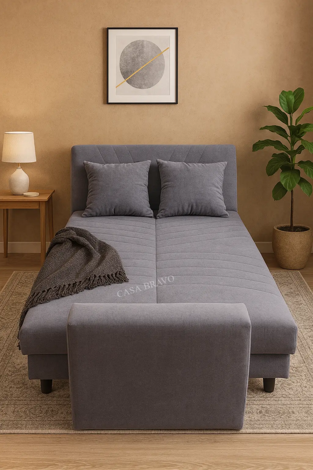 > Convertible Design: Smart lift-up sofa reveals a spacious hidden storage compartment — perfect for blankets, pillows, or everyday essentials.