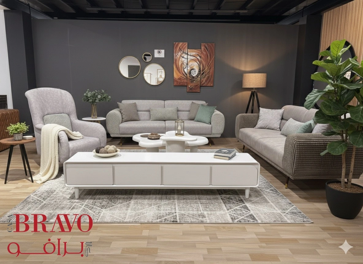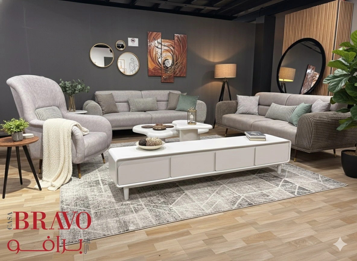 Upholstered in plush woven fabric in a warm, versatile tone, this sofa is a stylish addition to any living space. Clean frame lines and bevelled block armrests create a bold geometric silhouette, softened by subtle curves and generously cushioned seating for enhanced comfort.