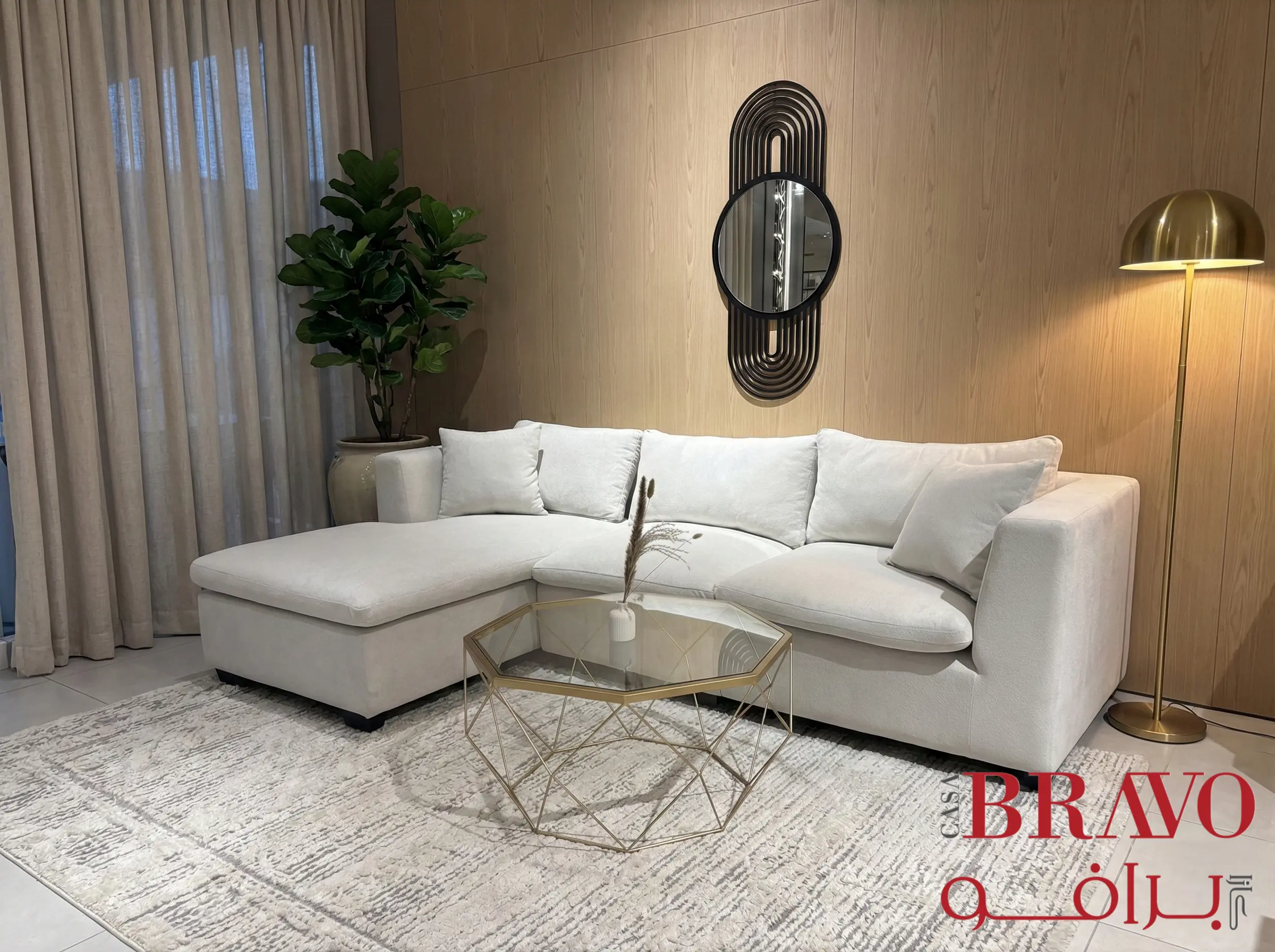 Enhance your living space with this fabric corner sofa that perfectly blends comfort, style, and durability. Built on a sturdy wooden frame, it offers lasting support and stability, while the clean, minimalistic design with a modern touch makes it a versatile addition to any décor. The sleek metal legs lend a contemporary edge and make it easy to style with different interiors. Designed for relaxation, it features fixed seating and back cushions with deep seating and a high back, providing ample comfort for lounging or unwinding after a long day.