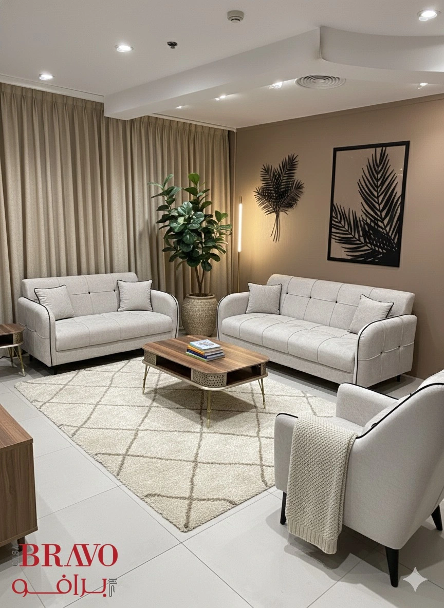 Create an inviting and stylish seating arrangement with this distinctive sofa set, designed to enhance modern living spaces. Crafted from durable wood frames and finished with uniquely tailored fabric upholstery, each piece combines reliable functionality with eye-catching design.