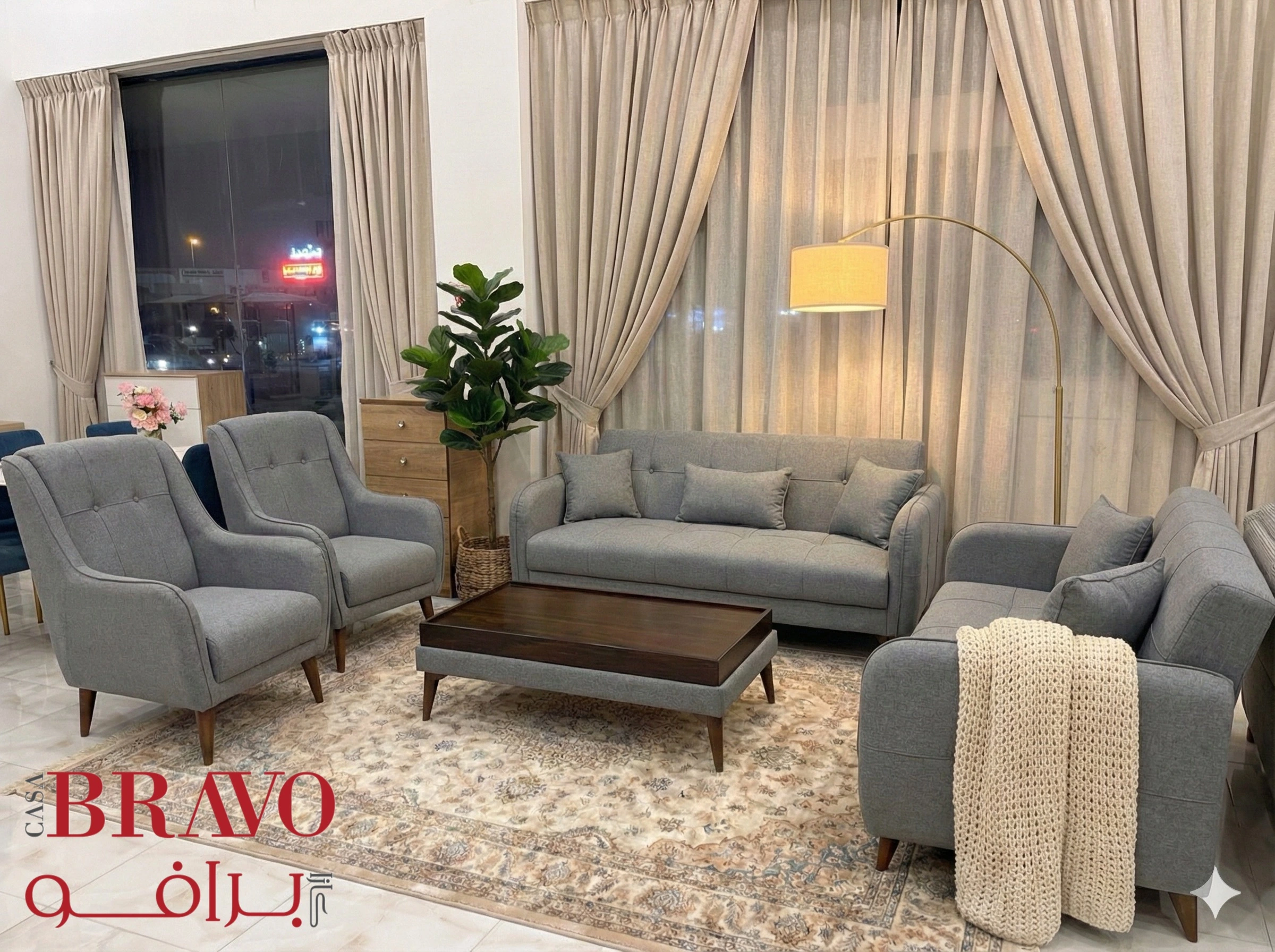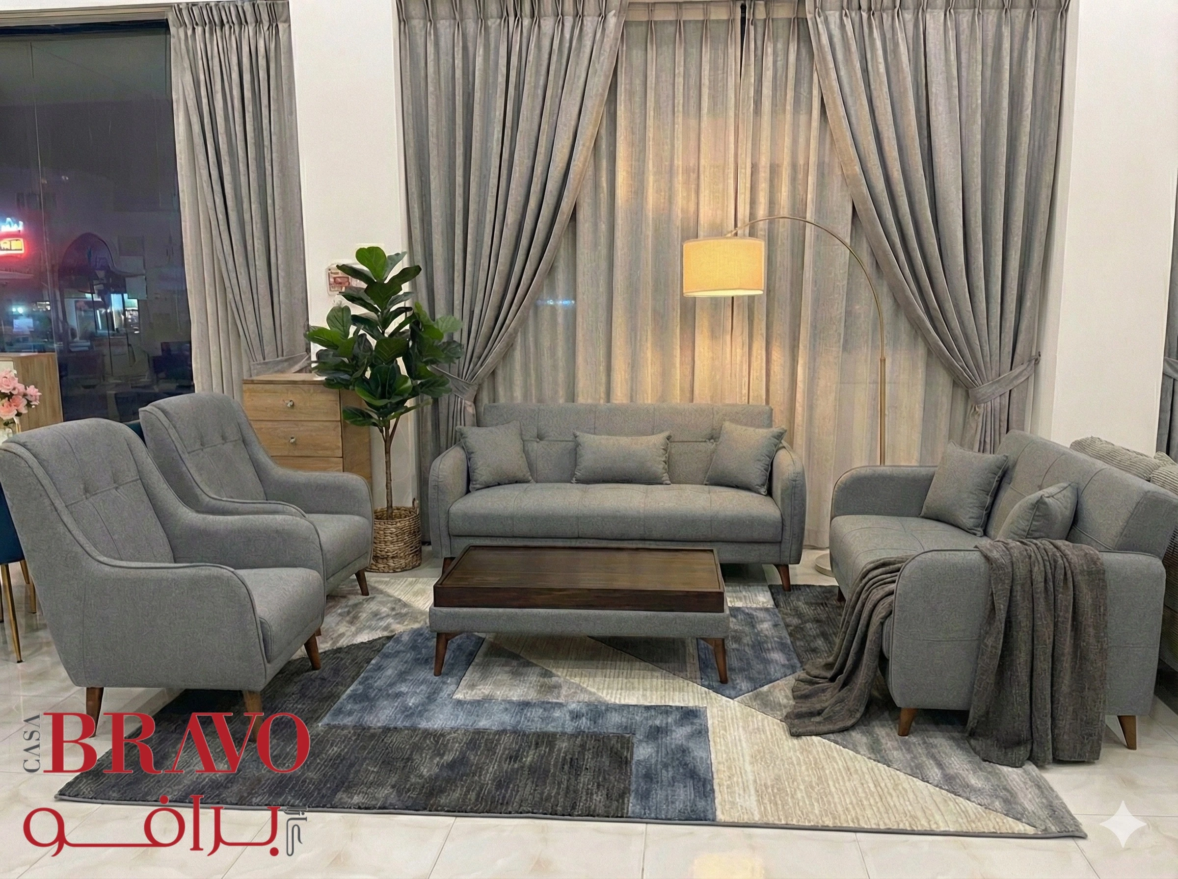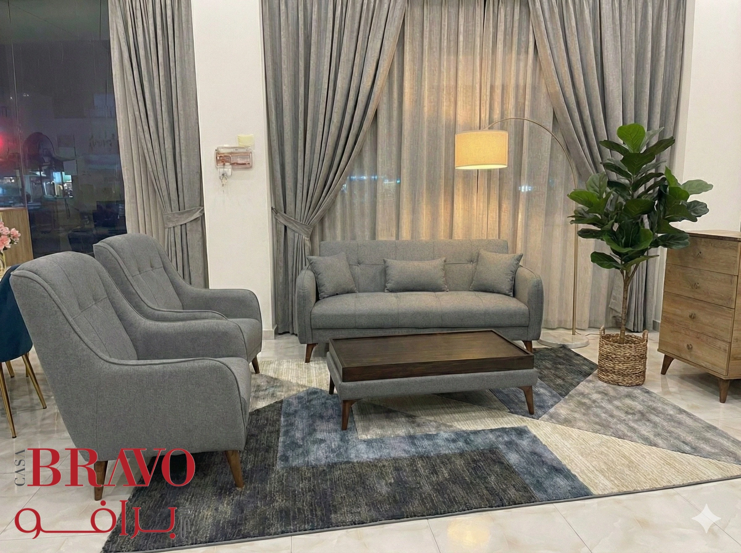 Create an inviting and stylish seating arrangement with this distinctive sofa set, designed to elevate contemporary living spaces. Crafted with sturdy wood frames and finished in uniquely tailored fabrics, each piece combines everyday functionality with striking visual appeal.