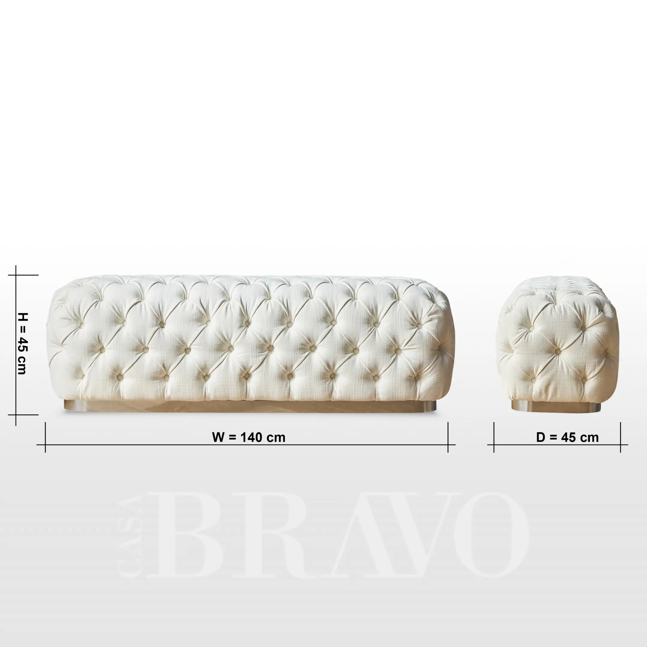 Bench: Width 140 cm x Depth 45 cm x Height 45 cm