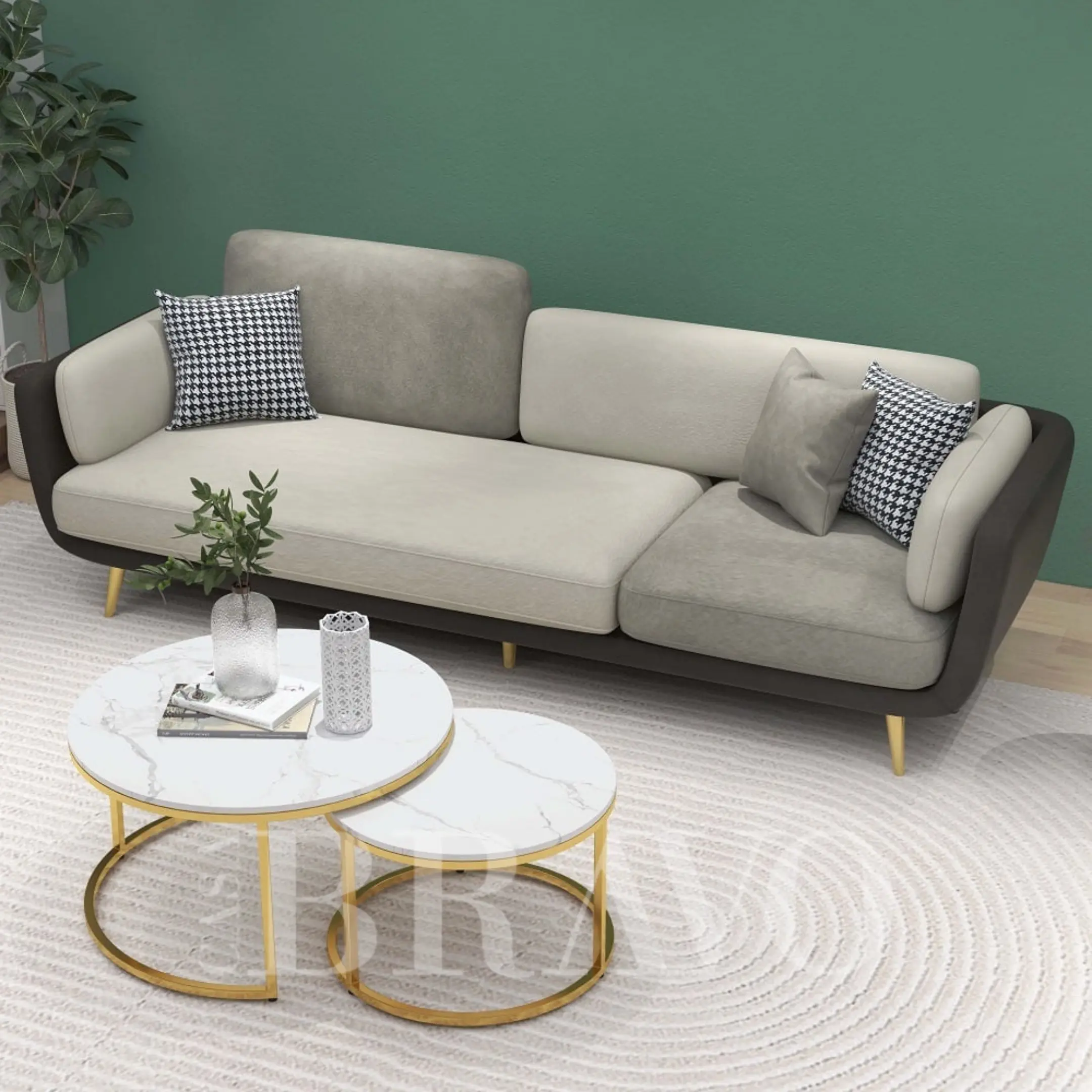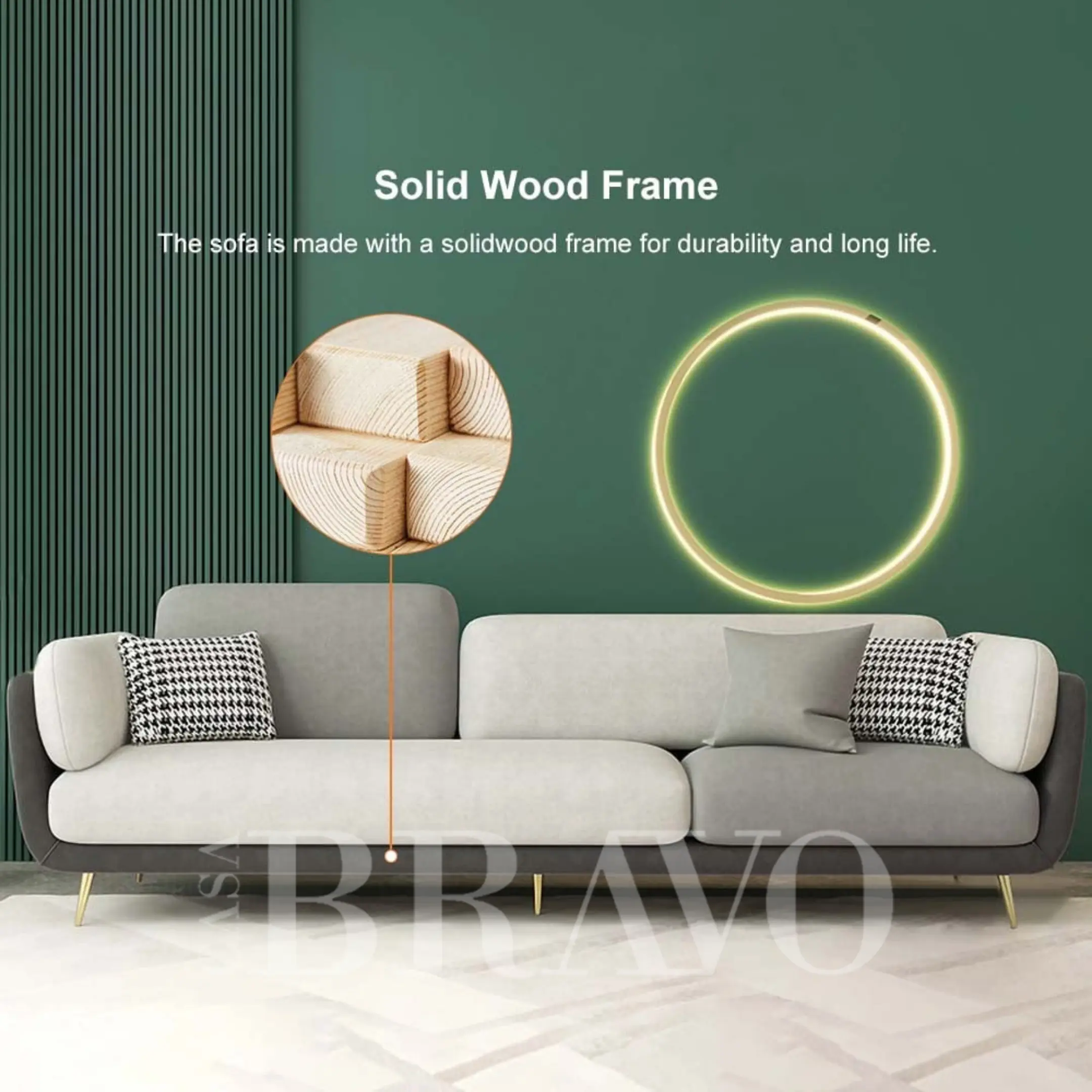 Featuring softly curved armrests and a sponge-filled seat, this three-seater offers plush comfort without compromising on support. Subtle channelled detailing and an oval-inspired silhouette add visual interest, while sturdy metal legs provide reliable stability with a sleek, modern finish. A perfect blend of design and comfort, this sofa makes a striking focal point in any living room.