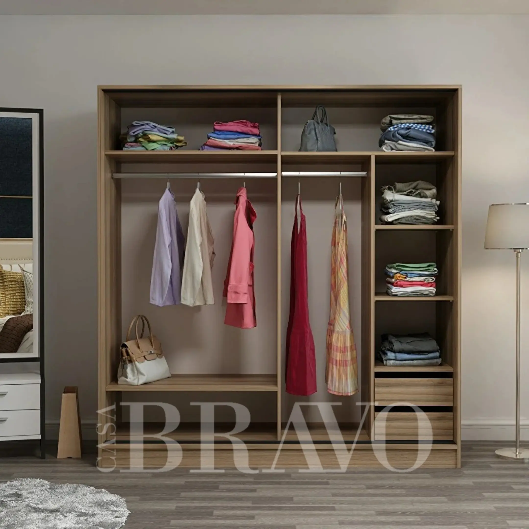 Whether you need a wardrobe for clothes, shoes, or accessories, this design provides smart organization and long-lasting durability.