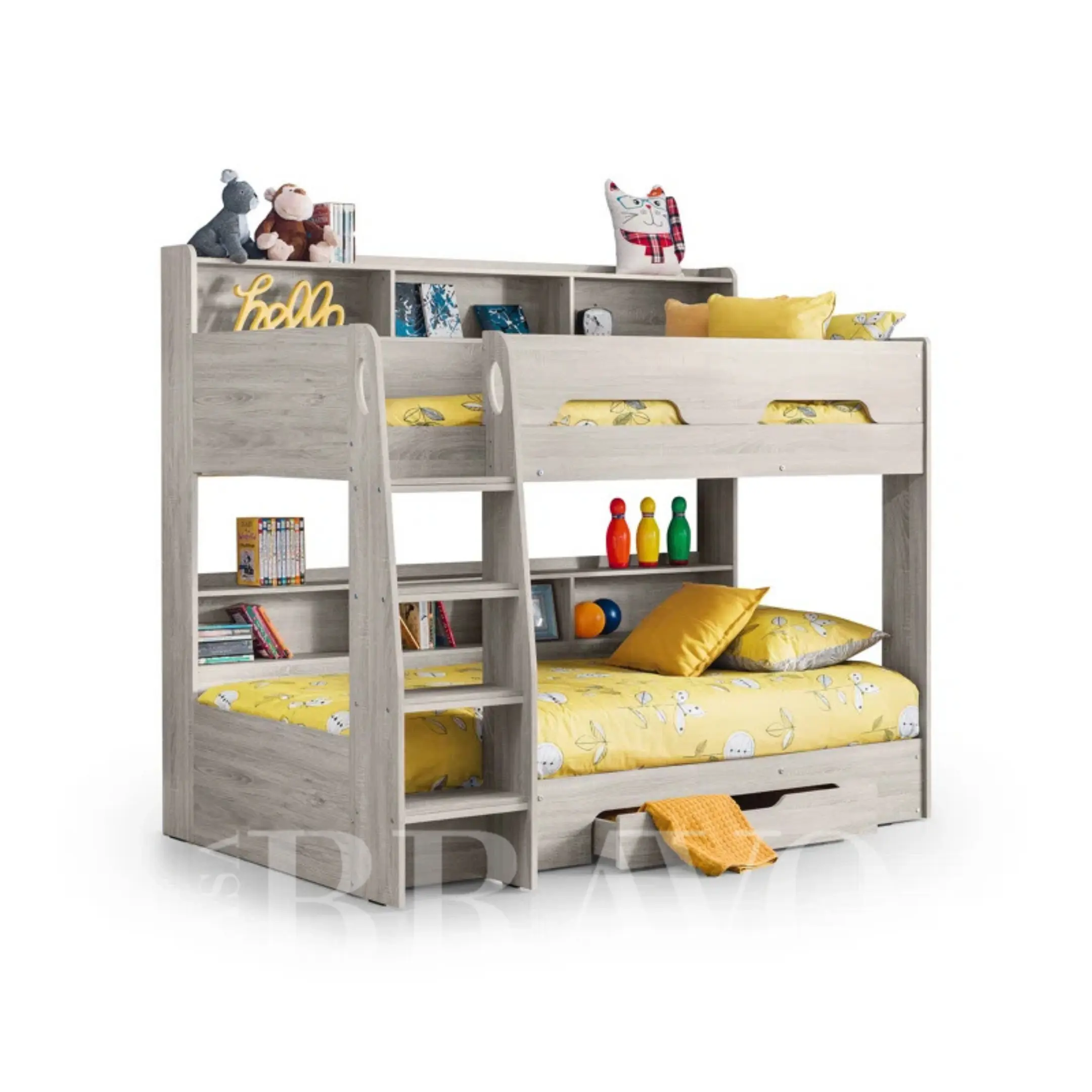 📚 Built-in Storage Shelves: Spacious open shelves on both levels for books, toys, and decorative items.