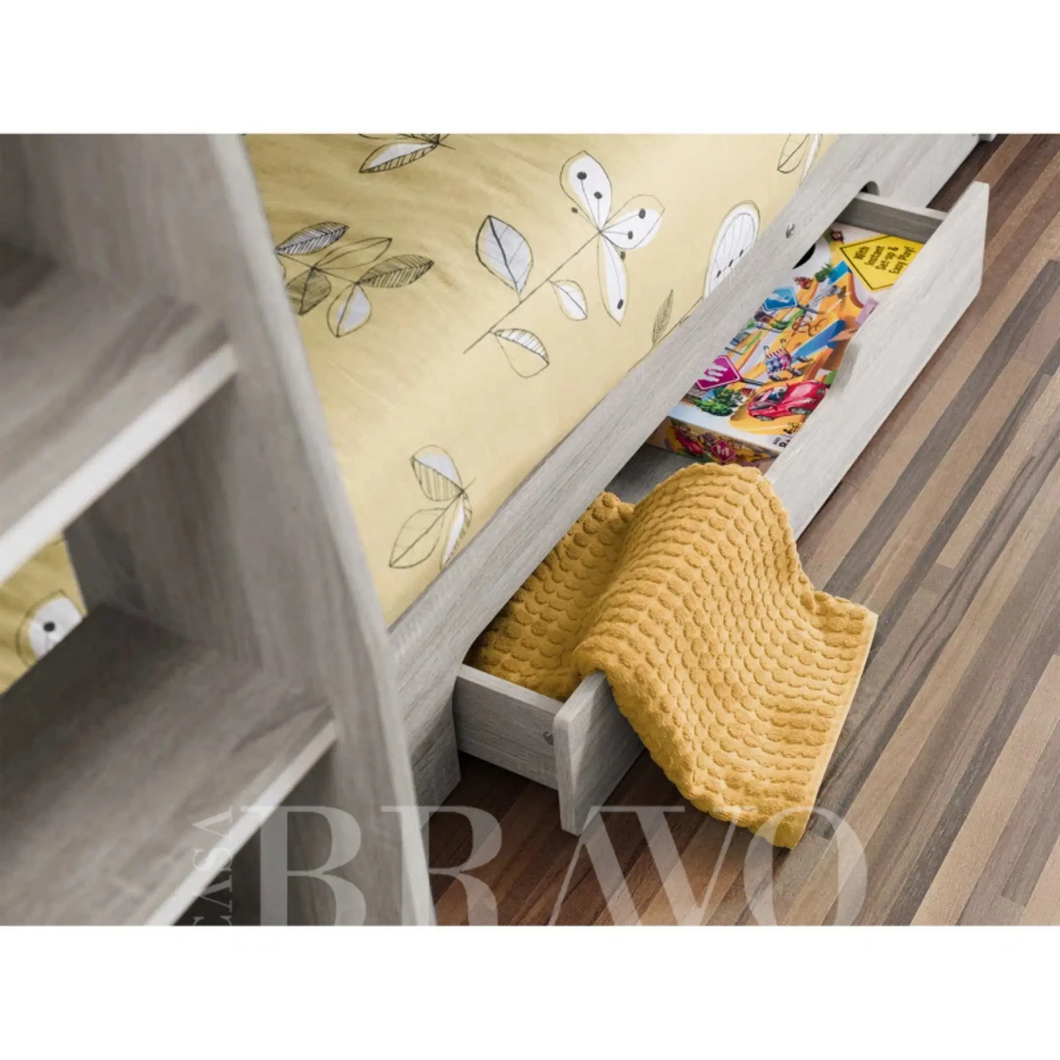🧺 Pull-Out Drawer: A hidden lower storage drawer ideal for mattresses, blankets, and extra toys.