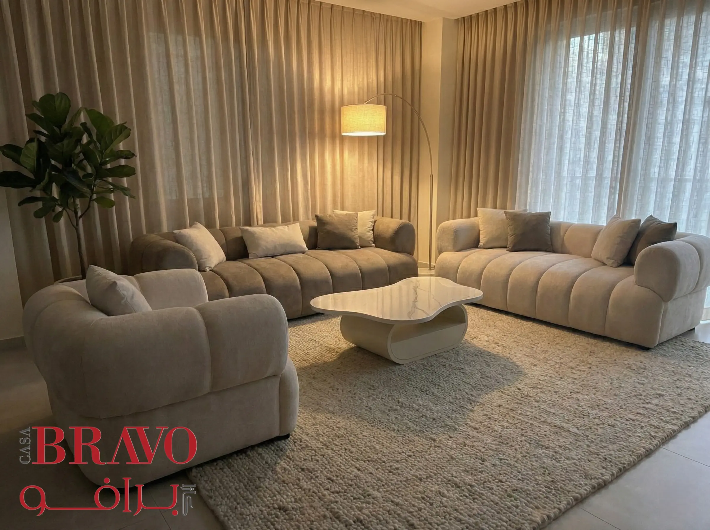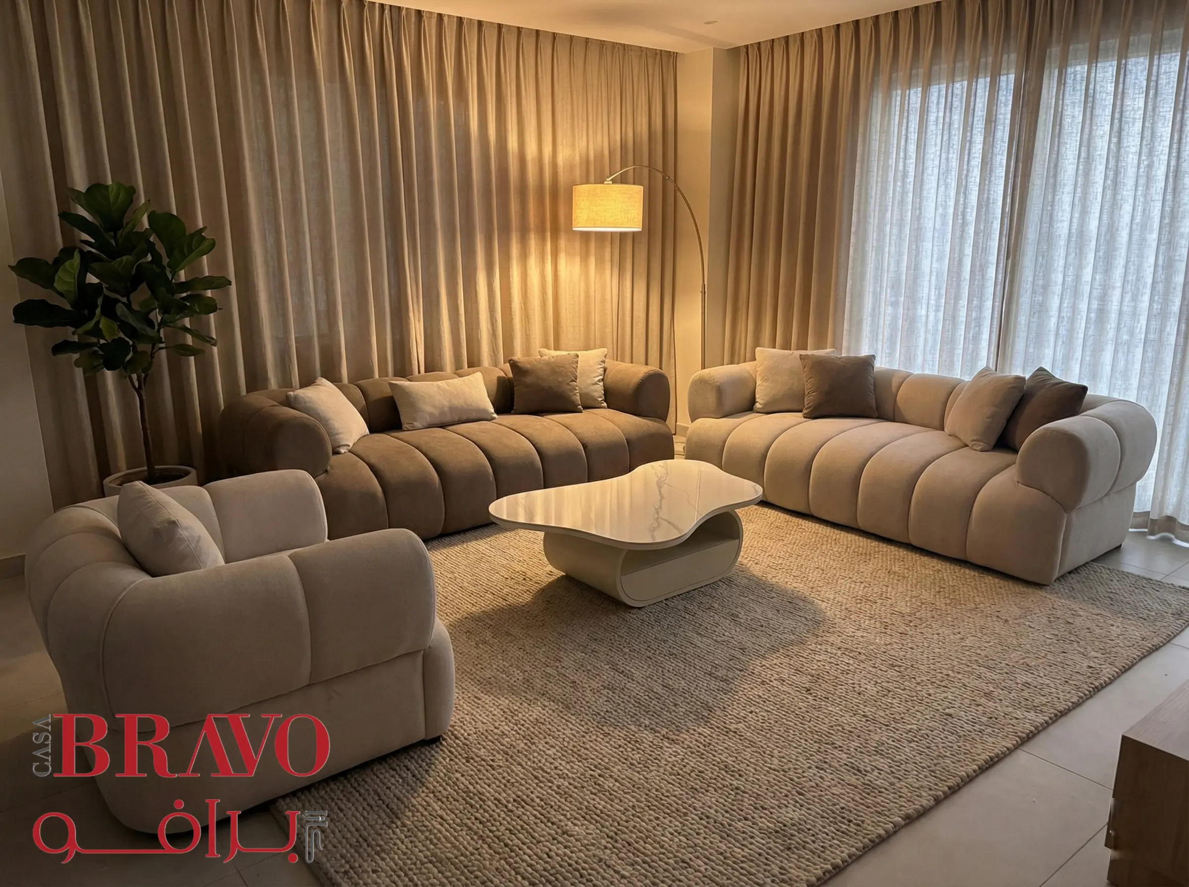 Bring regal elegance to your living space with this stunning sofa set, designed to add timeless sophistication to any interior. The set includes two three-seater sofas and an armchair, each thoughtfully crafted with rich fabric upholstery and supported by a sturdy beech wood frame for long-lasting durability.