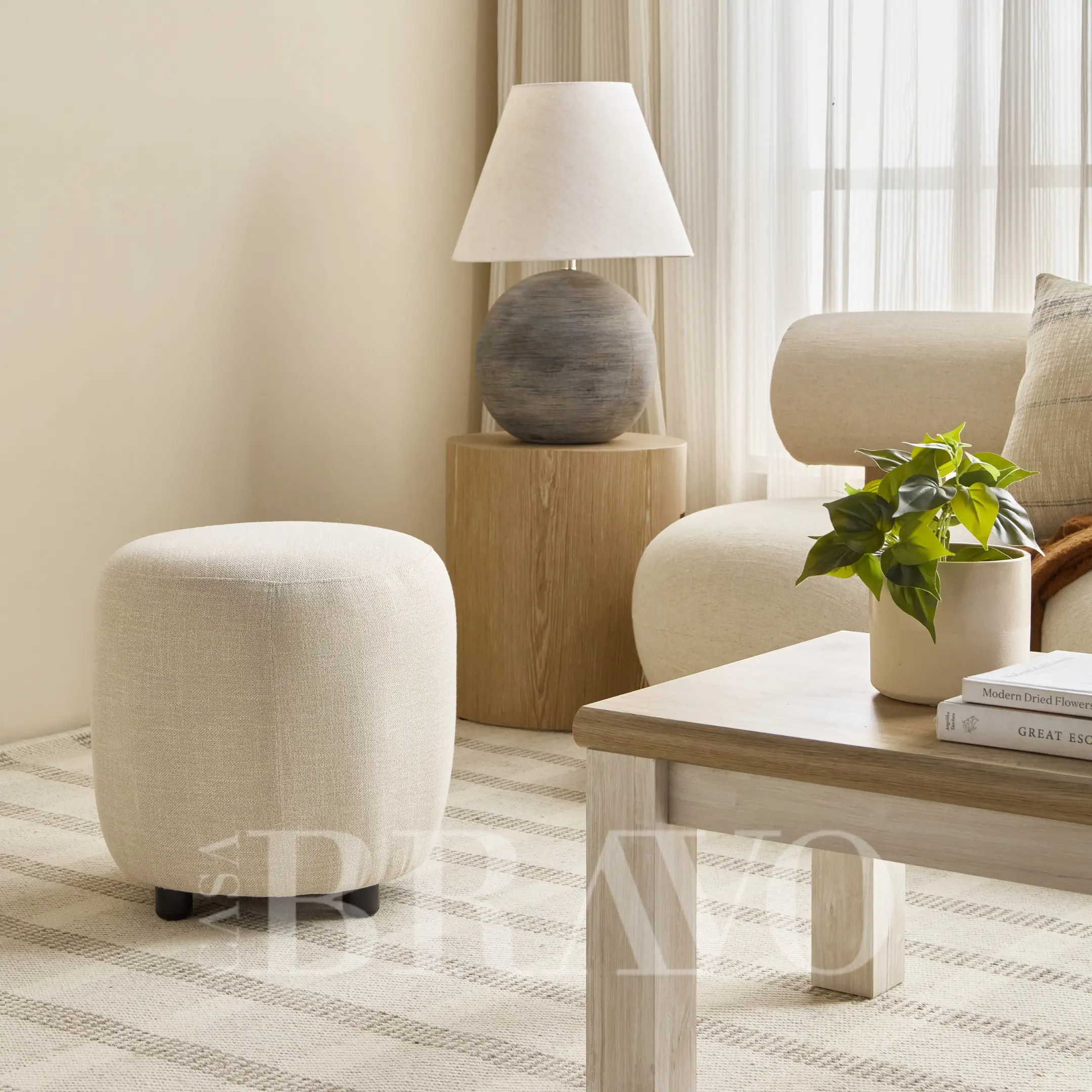 Crafted with premium upholstery fabric and a sturdy wooden base, each pouf and bench offers durability without compromising on comfort. The neutral beige tones blend seamlessly with any interior décor, from minimalist modern to cozy contemporary.