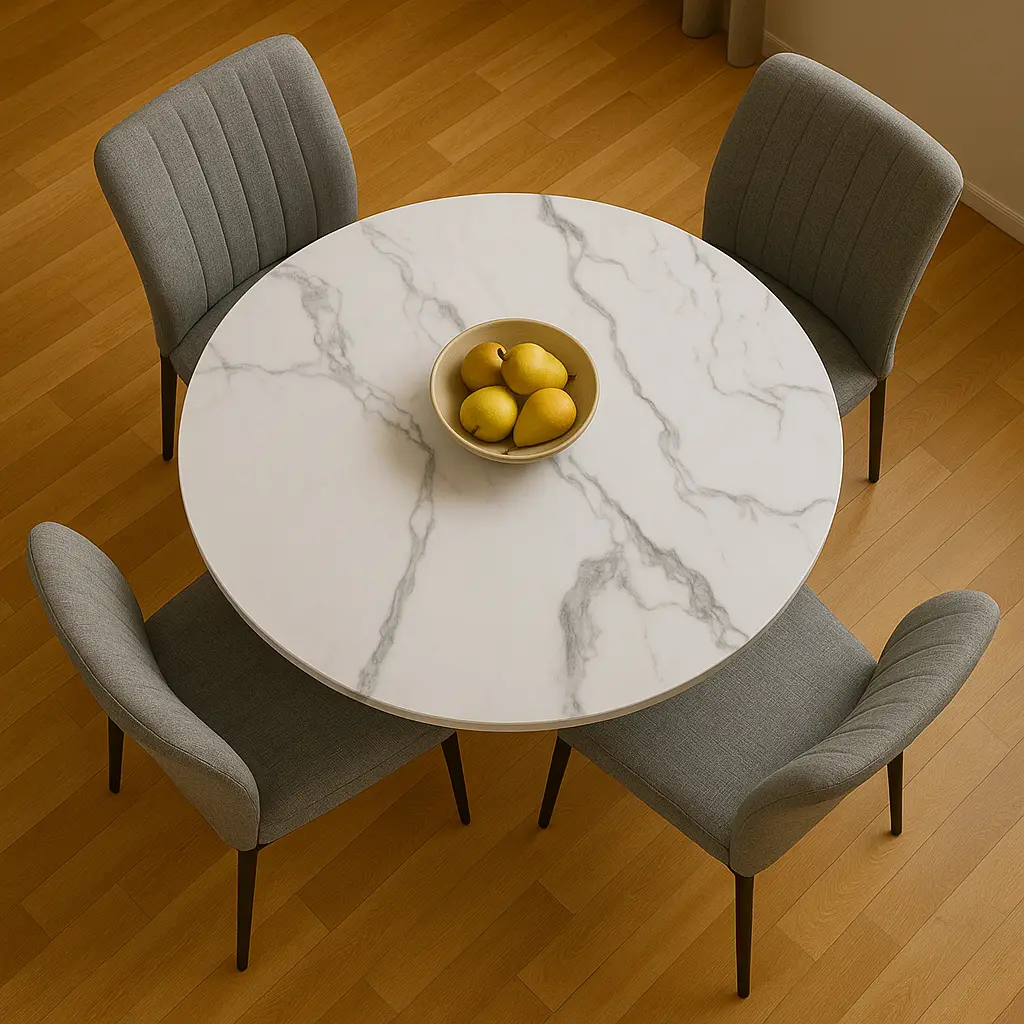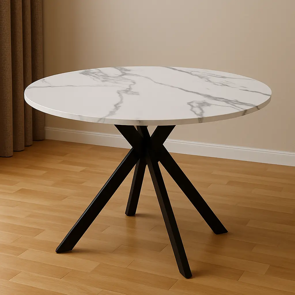The overall design is light, airy, and functional, blending the warm simplicity of Scandinavian design with the sharp, clean lines of modern industrial aesthetics. It would be perfect for a contemporary apartment or a casual, elegant dining space.