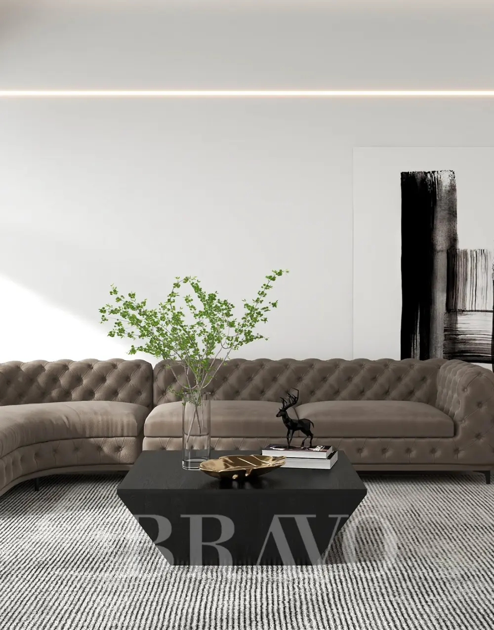 The ShadowEdge Minimalist Set features a striking all-black design that embodies modern refinement. The center table’s sleek, low-profile geometric form pairs perfectly with the ultra-slim TV stand, creating a seamless, contemporary aesthetic. Designed for sophisticated interiors, this set delivers bold style with a clean, understated presence.