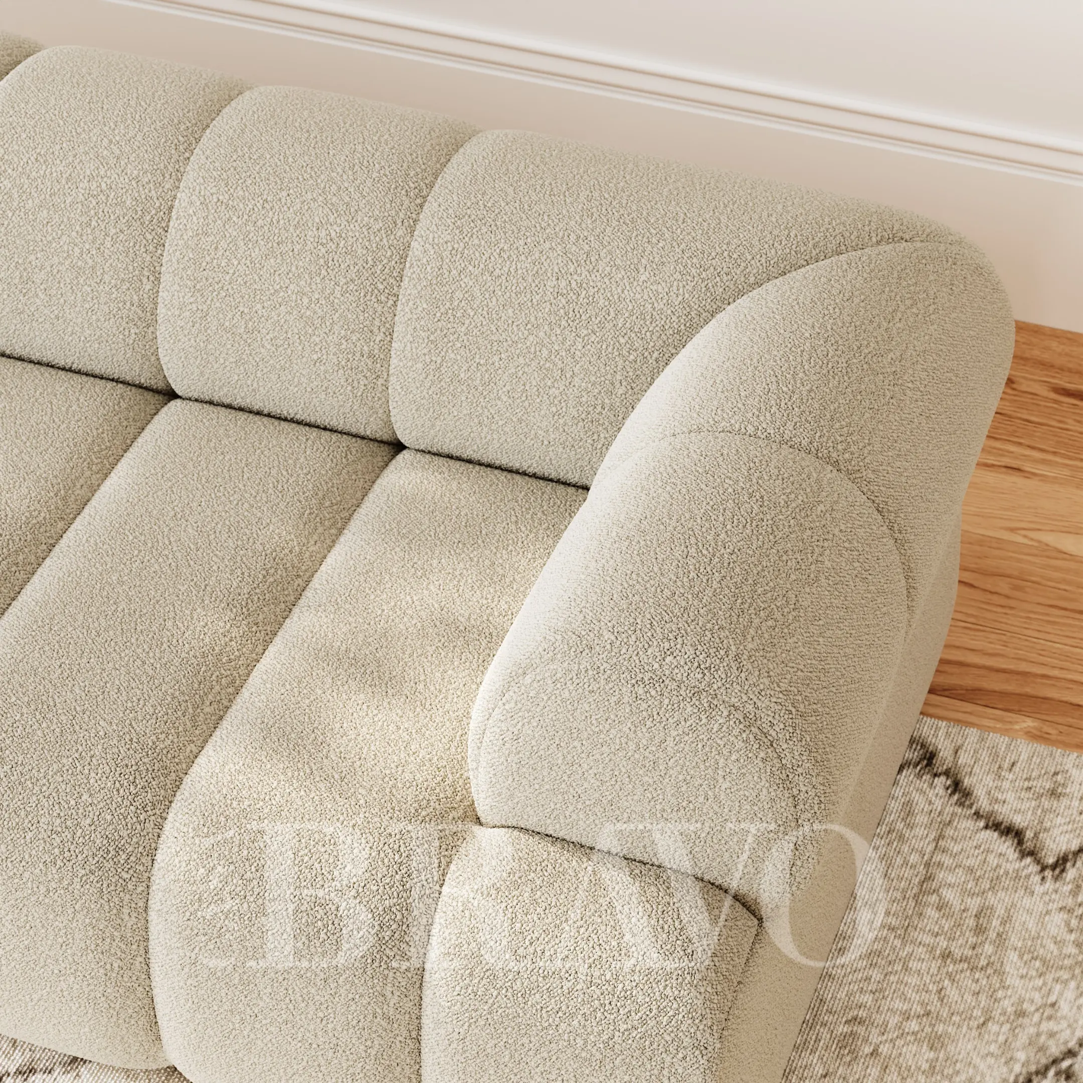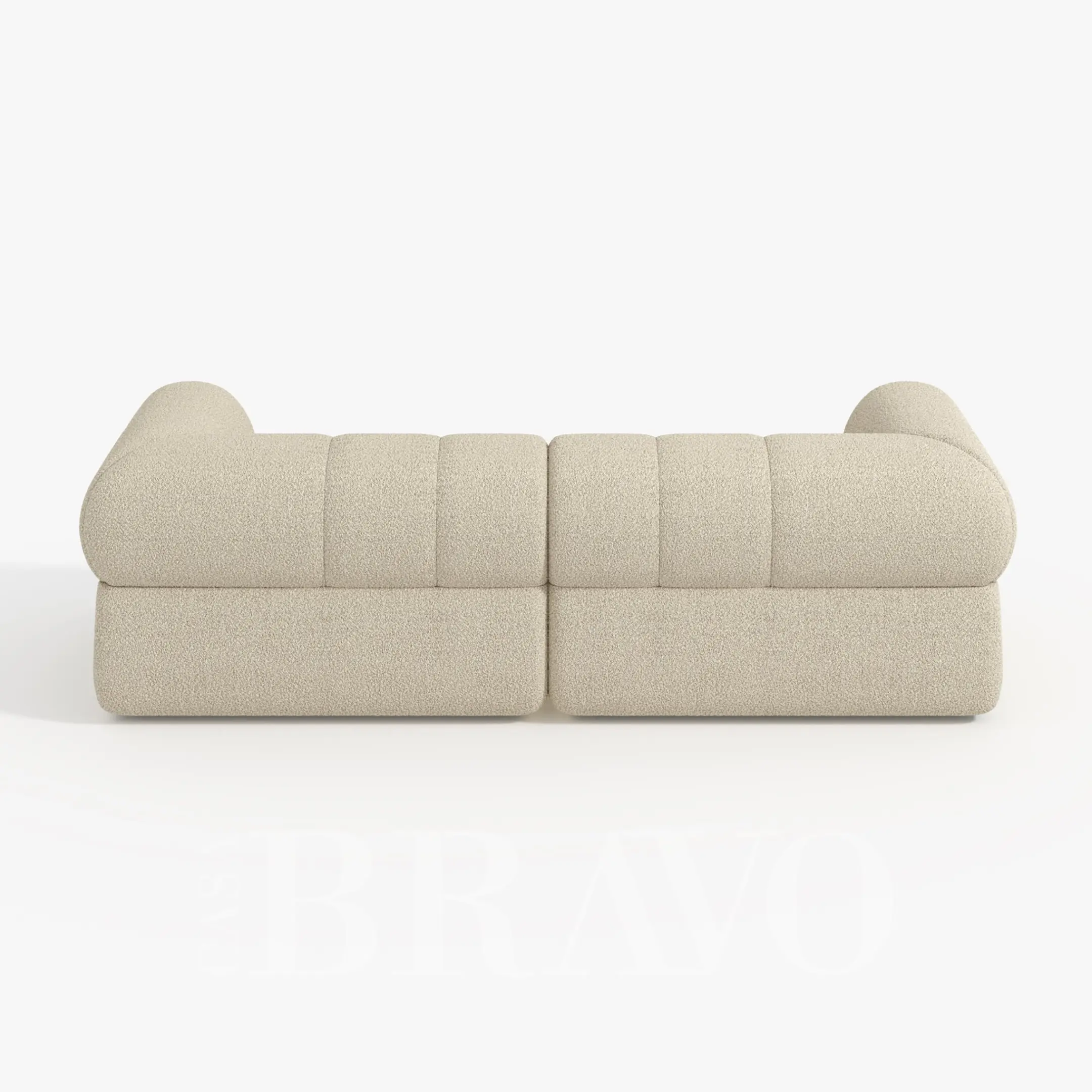 Indulge in contemporary style with this modern sofa, defined by clean lines and subtle contours for a fresh, stylish look. Built on a sturdy wooden frame for lasting support, it offers reliable comfort for everyday living. The horizontal detailing on the backrest adds a distinctive design accent, while the plush seating lets you relax and unwind with ease.