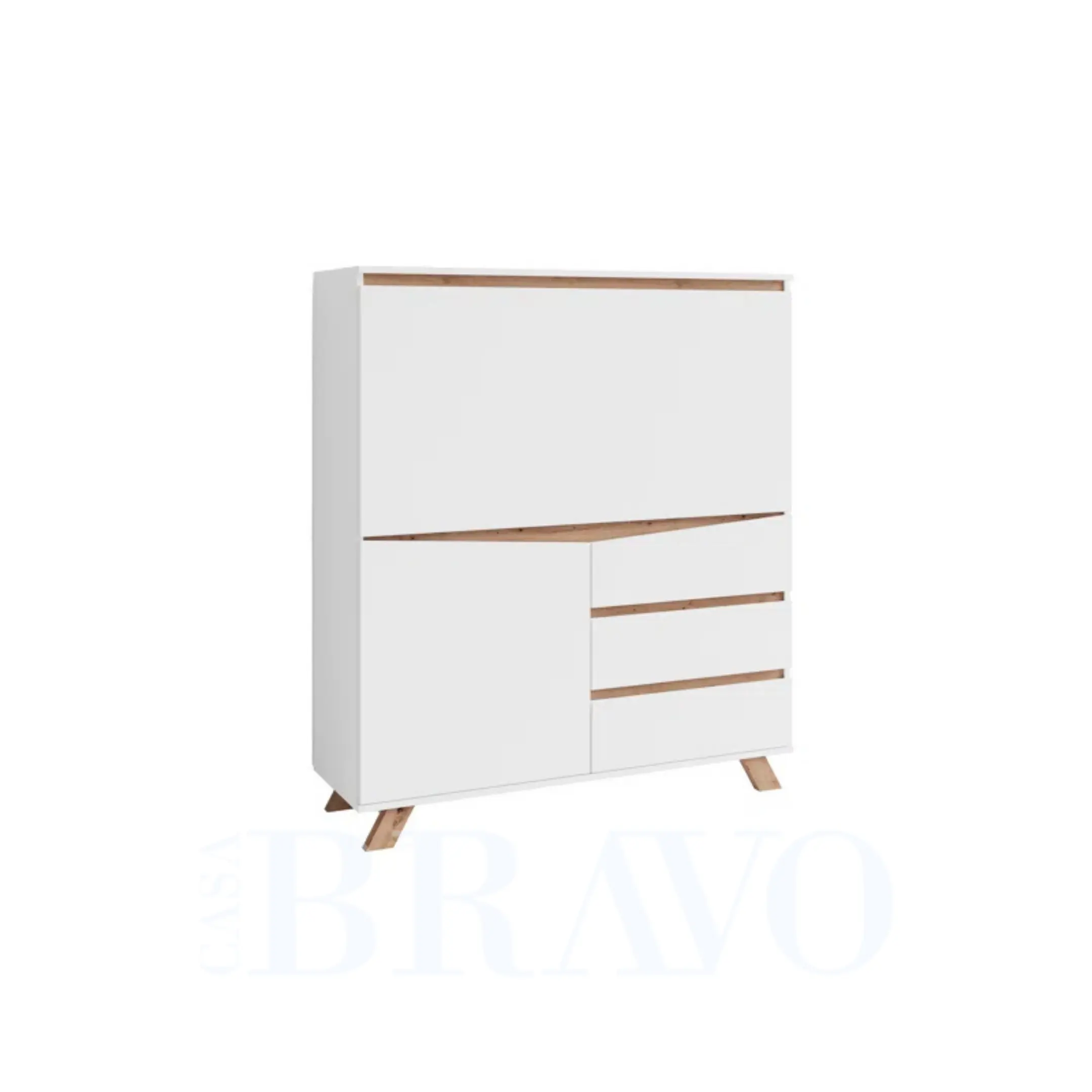 * Aesthetic: The entire piece features a sleek, seamless matte white finish with thick, simple side panels for a modern block construction look.