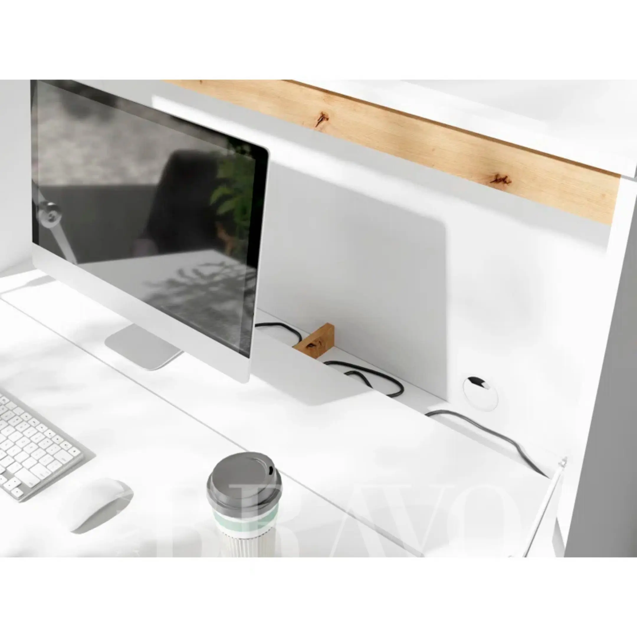 * Storage: It includes a single, wide, handle-less drawer discreetly integrated beneath the main desktop, perfect for keeping small essentials like pens, paper, or makeup organized and out of sight.