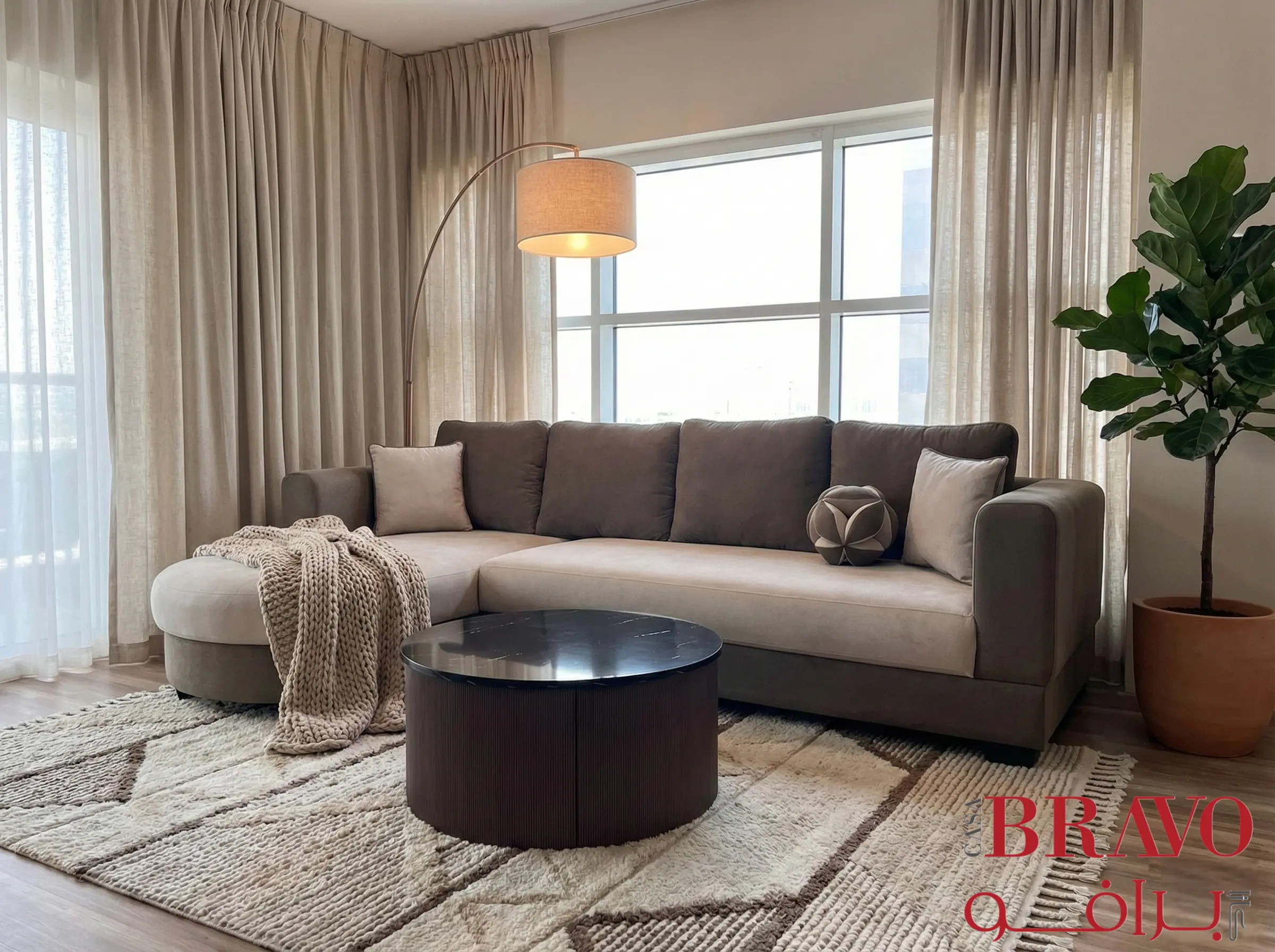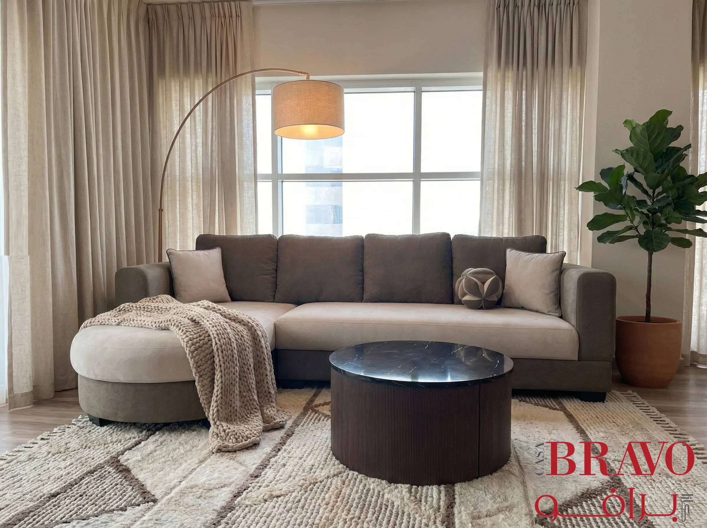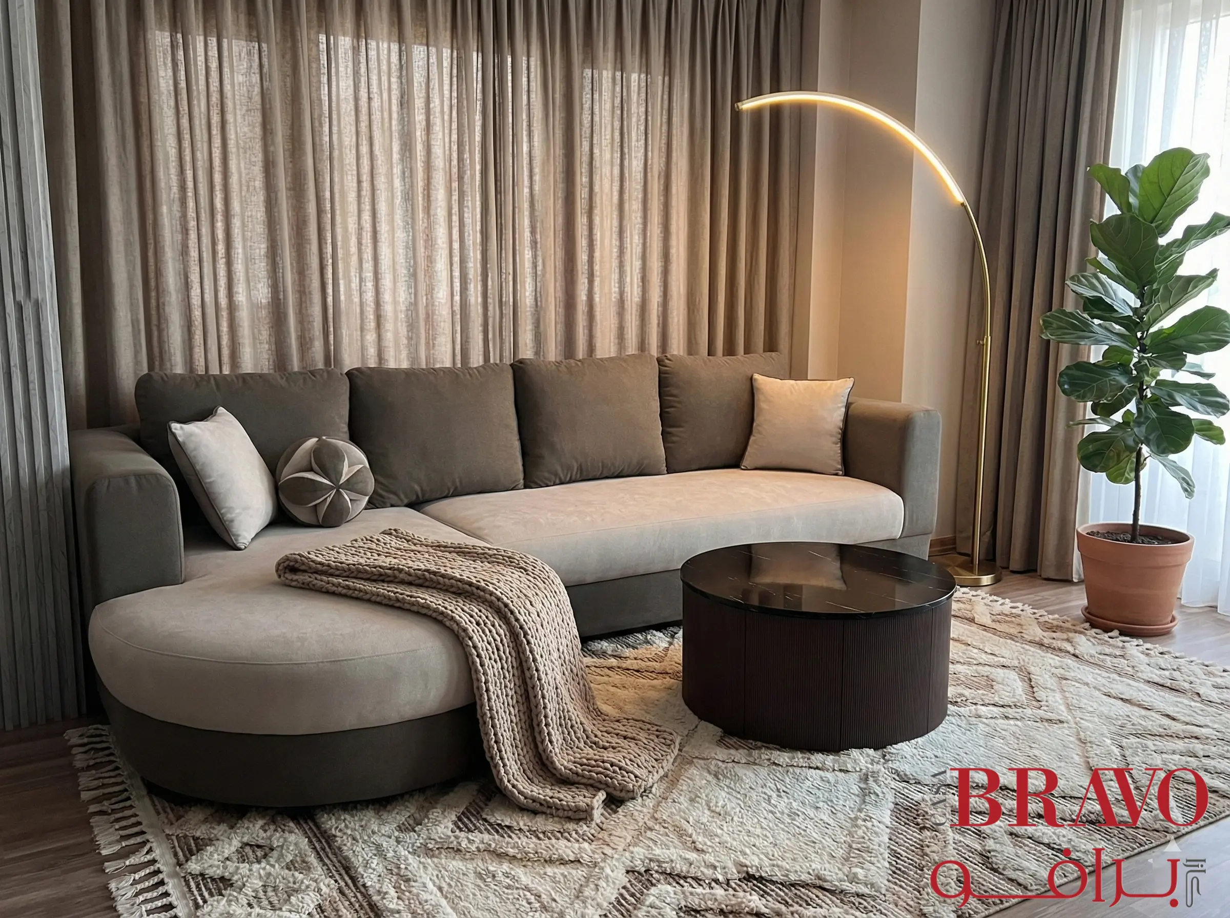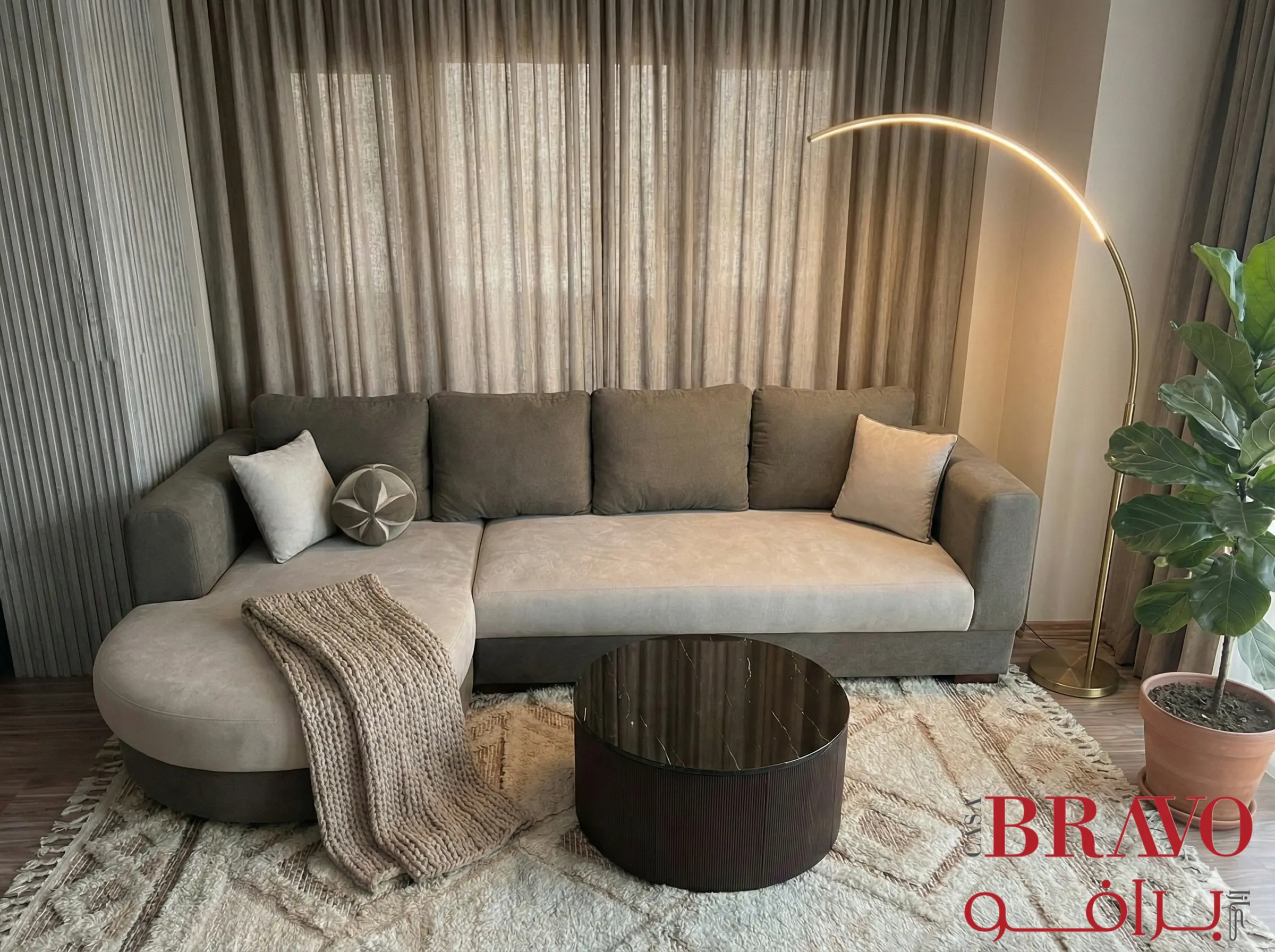 Discover ultimate comfort and style with this contemporary corner sofa, featuring plush woven upholstery in a versatile hue. The solid wood frame ensures exceptional durability and longevity, providing a stable foundation for years of enjoyment. A distinctive round chaise adds a modern, inviting touch, perfect for relaxing and unwinding. This elegant sofa offers ample seating and effortlessly complements a variety of interior designs, making it an ideal centrepiece for your living space.