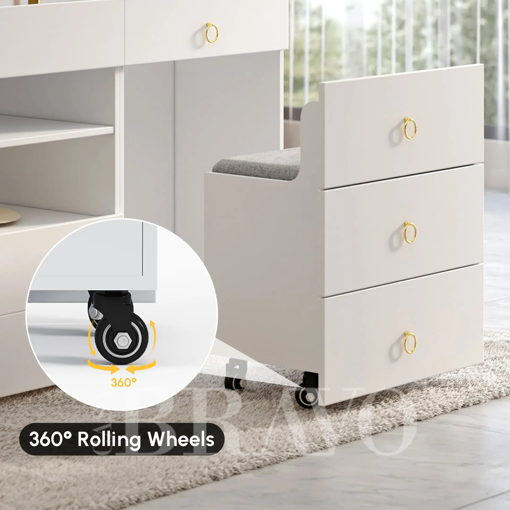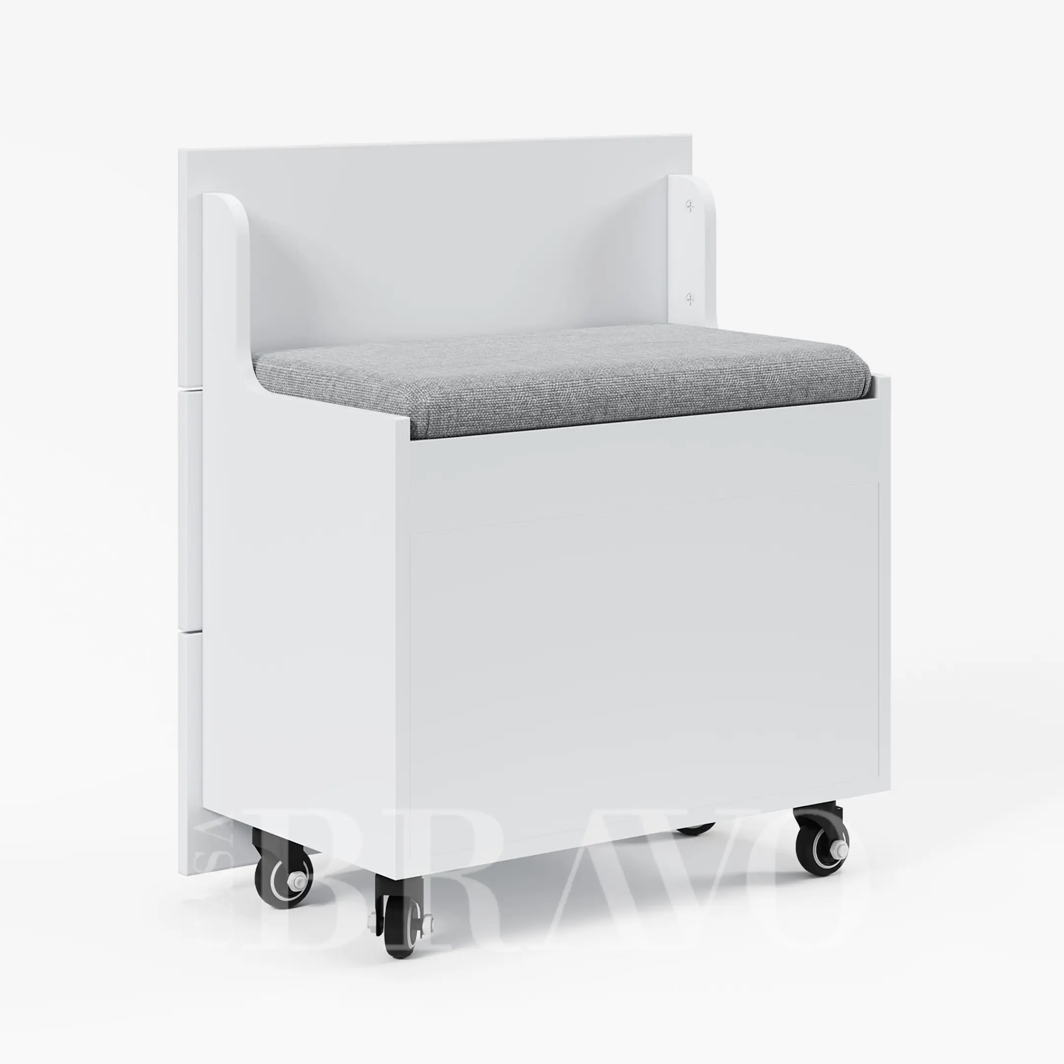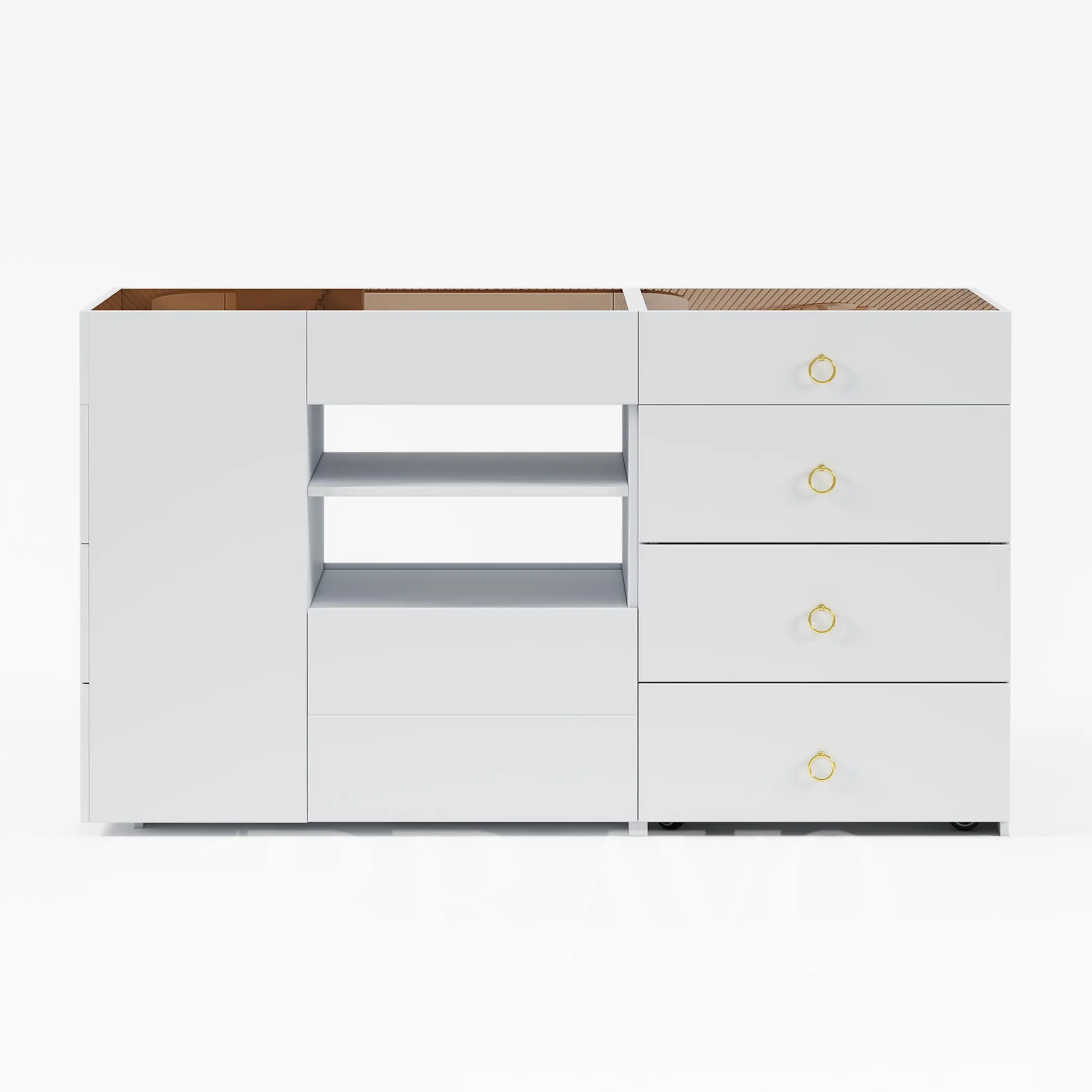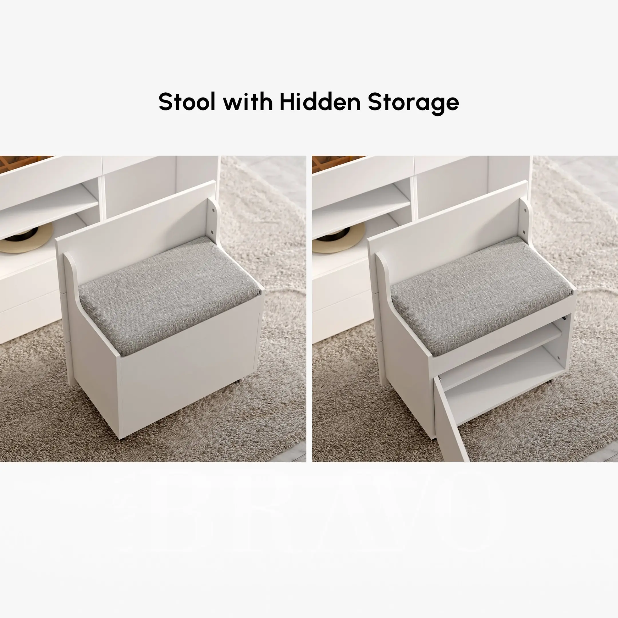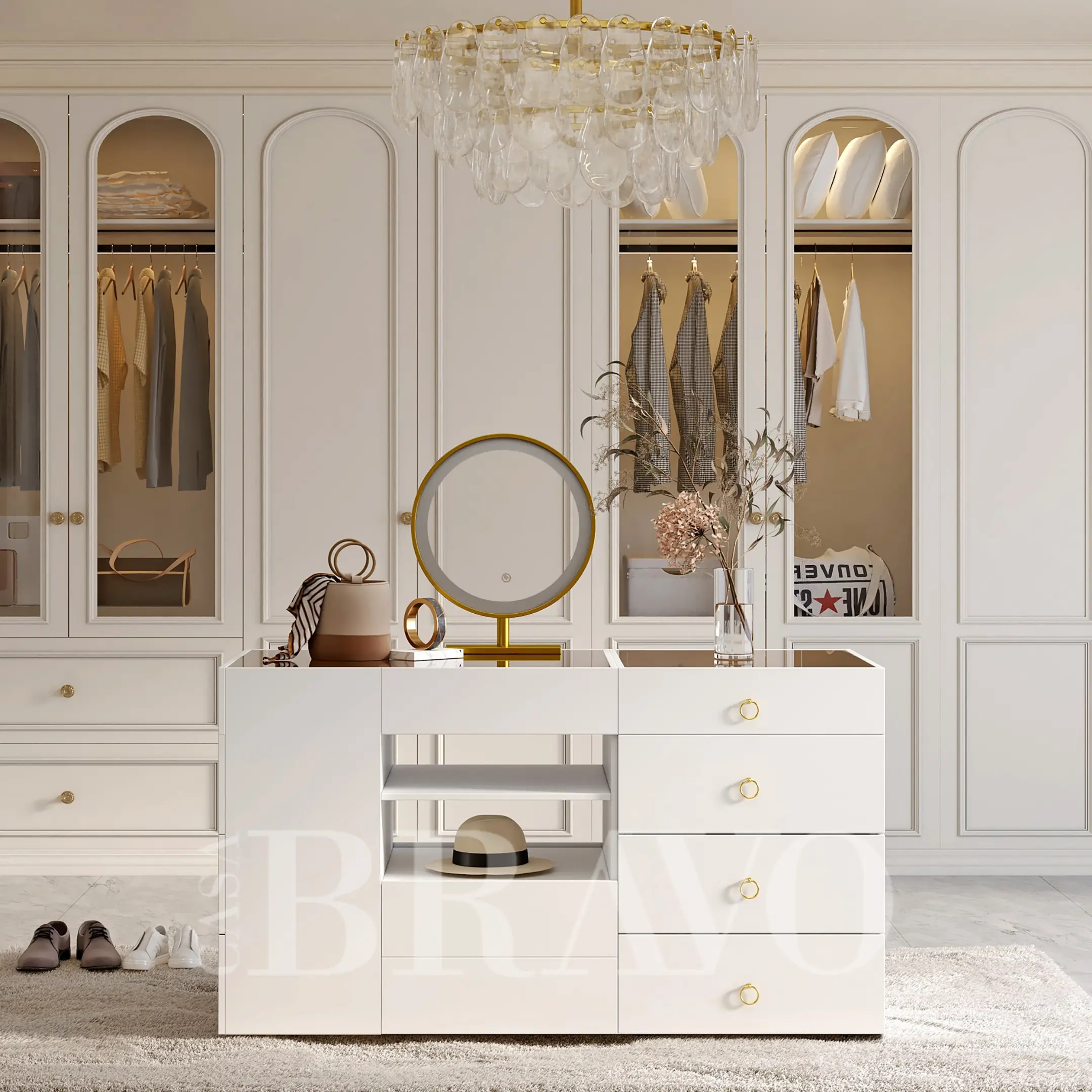 White decorative island with hidden storage chair and tempered glass top | Luxury Collection