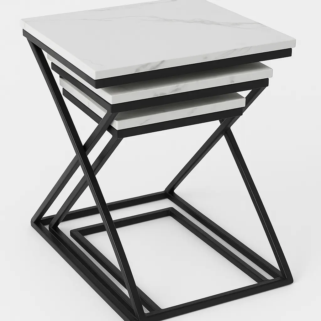 This is a set of Nesting Side Tables defined by their clean, industrial-inspired lines and practical functionality.